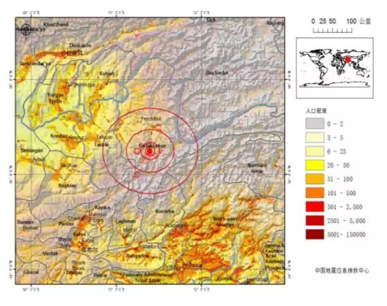 此次震中地区附近在2013年4月24日曾经发生6.2级地震。地震后巴基斯坦首都伊斯兰堡以及吉德拉尔、古吉兰瓦拉、米扬瓦利、穆扎法拉巴德、费萨拉巴德、白沙瓦、拉合尔、拉瓦尔品第等城市均有震感,此外,哈扎拉族人聚居区也有明显震感。印度首都新德里和一些卫星城、克什米尔和阿富汗地区也都能感觉到地震。